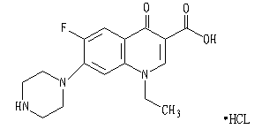 化 學 名:1-乙基-6-氟-1,4-二氫-4-氧代-7-(1-哌嗪基)-3-喹啉羧酸鹽酸鹽。